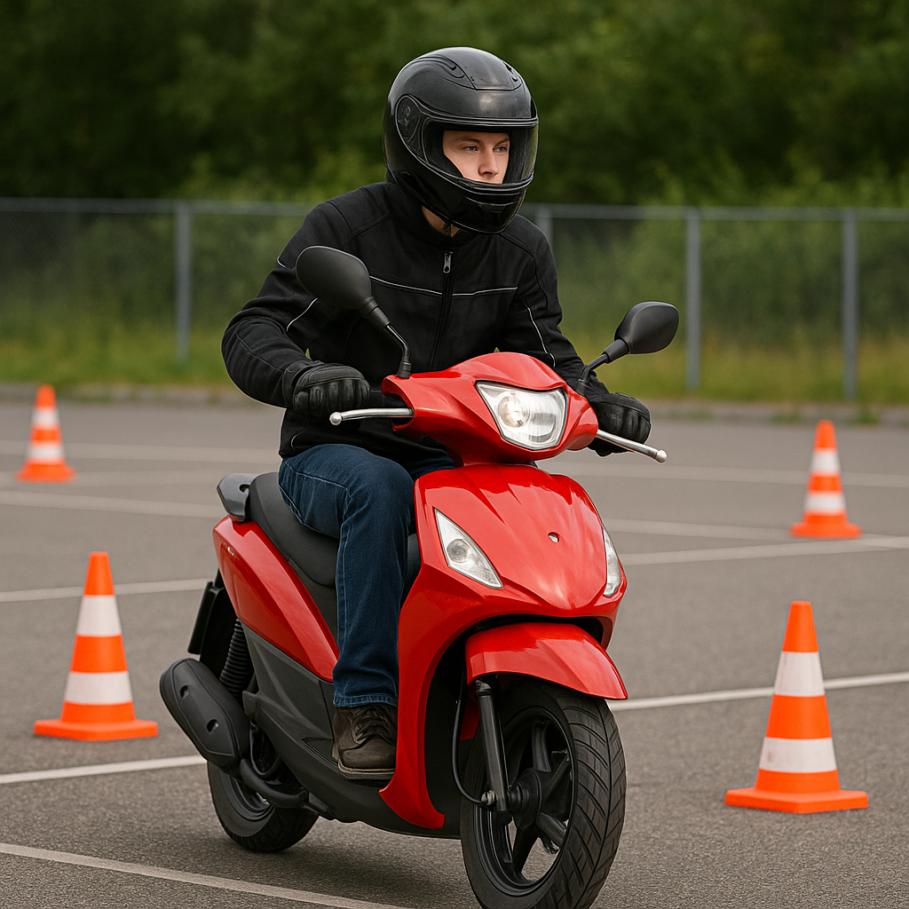 🟢 Pojazdami kategorii AM (czyli m.in. motorowery, skutery do 45 km/h, lekkie quady)